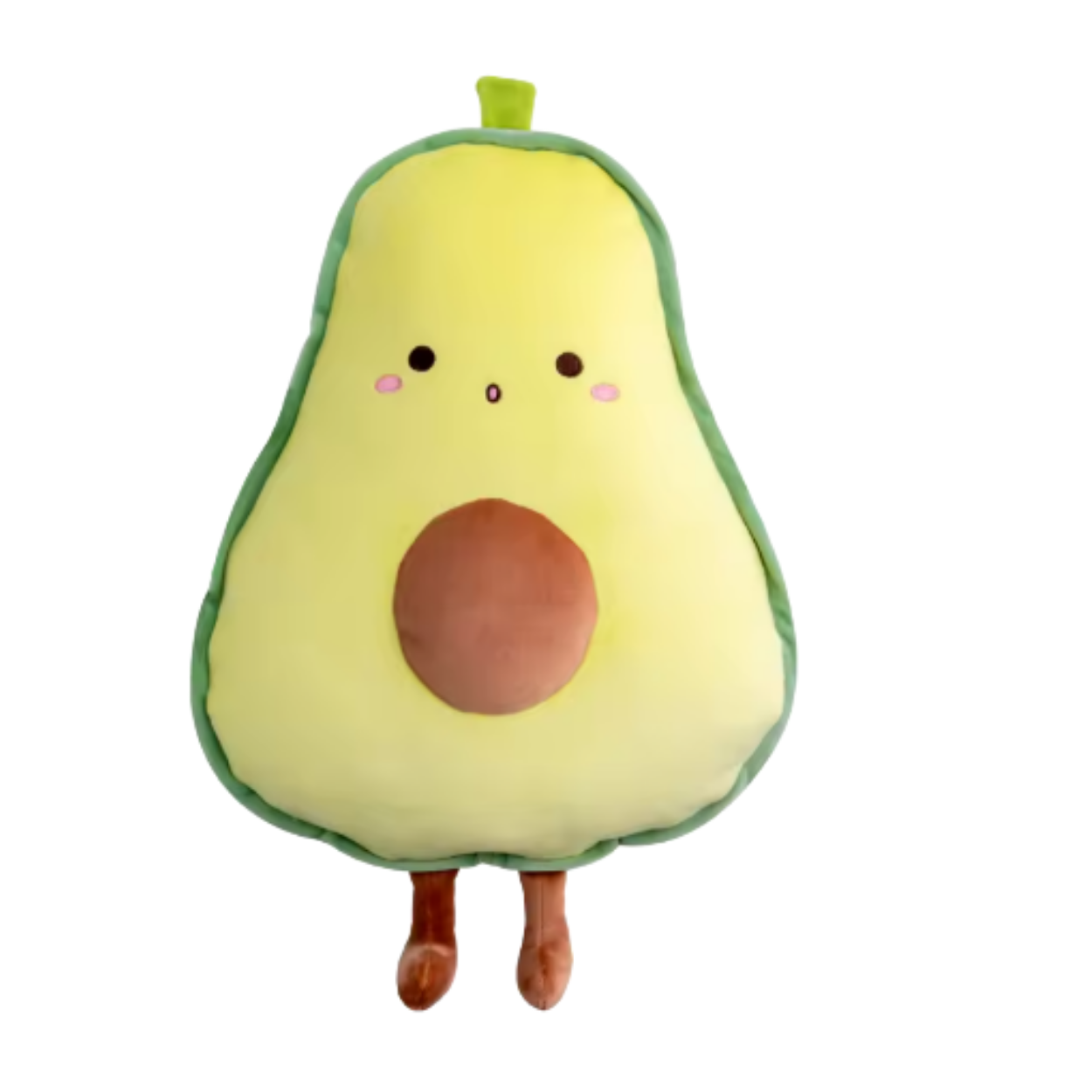 Con due gambette molli, un’espressione perennemente scioccata e un nocciolo che nessuno ha avuto voglia di togliere, è l’allegoria peluche del classico avocado da supermercato: sempre troppo maturo, sempre troppo tardi.